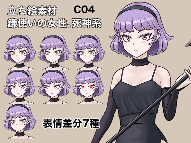 立ち絵素材、鎌使いの女性、クールキャラ、死神系、C04 - ケイジェイ製作所 - BOOTH